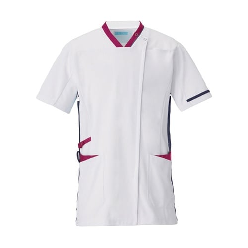 KAZEN スクラブジャケット半袖男女兼 ホワイト×プラム×ネイビー L 998−18 A04E-3198