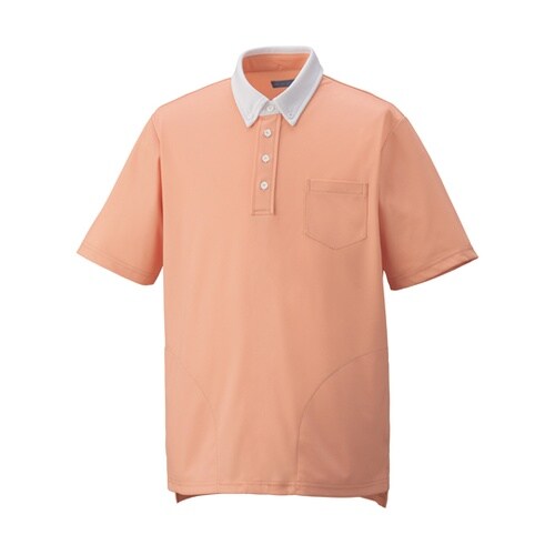 ボタンダウンのクレリックカラーポロ美しい着こなしのためのサイズバリエーション割れにくい白のシリコンボタンで爽やかな印象に。後ろ衿中央に配色使いのこだわり。胸ポケットには名札やクリップライトを付けられる