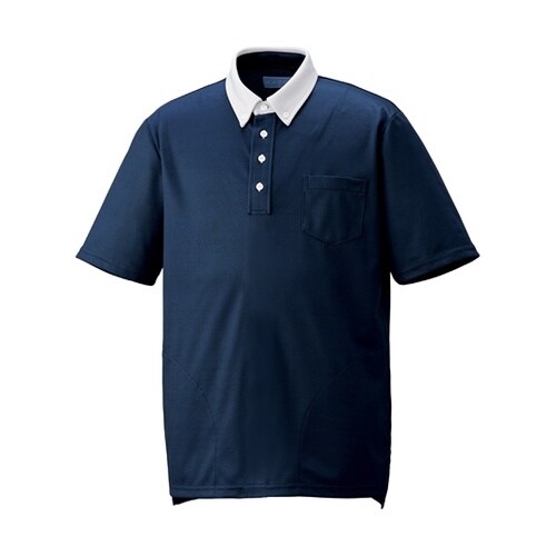 ボタンダウンのクレリックカラーポロ美しい着こなしのためのサイズバリエーション割れにくい白のシリコンボタンで爽やかな印象に。後ろ衿中央に配色使いのこだわり。胸ポケットには名札やクリップライトを付けられる