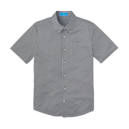 ディテールに凝ったおしゃれなギンガムニットのボタンダウンシャツ。ゆるやかなラウンドカットで、裾を出してもきちんと感のある着こなしに。白いボタンをチェックと同色の糸で留めたこだわりのディテール。背中にタ |
