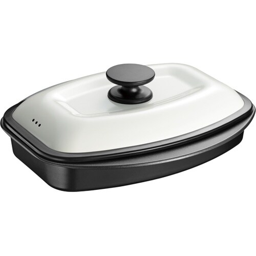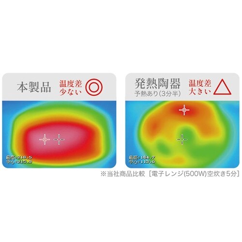 鍋やフライパン不要。火を使わずに簡単調理。電子レンジで調理開始→約3分で200度まで到達し、最高温度は220度!焼き魚も肉料理もまるでフライパンで焼いたように表面はカリッ、中はふっくらと仕上がります。 |