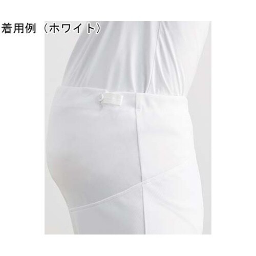 胸元にギャザーの入ったデザインは、大きな胸やおなかを優しく自然に包みます。おなかにファスナーがあたらないプルオーバータイプ。衿元のファスナーが大きく開き、着脱が簡単です。白ベースのベーシックなデザイン