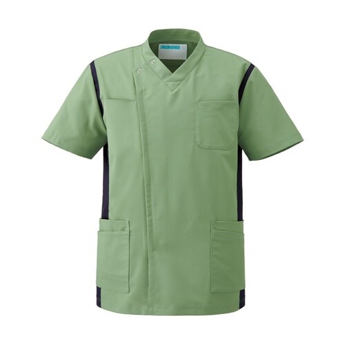 メンズスクラブ(前開き)グリーンティー×ネイビー M 974−52 M