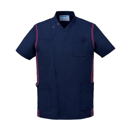 KAZEN メンズスクラブ(前開き)ネイビー×ワイン 5L 974−48 A04E-3623