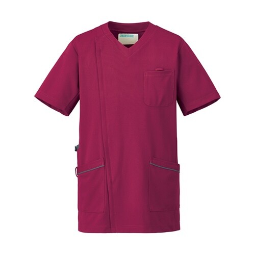 シンプルでスタンダードなメンズスクラブ動体裁断やわらかく伸縮性のある素材左胸に携帯・スマートフォン対応ポケット付。左胸の名札ループは、名札だけでなく、手元を照らすクリップライトの取り付け場所としても適 |
