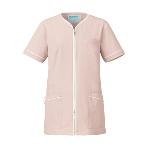 上品なデザイン、カラーリングは幅広い年齢層に人気。サテン素材で光沢感のあるラインがアクセントになり、医療現場に落ち着きと品格を与えてくれる一着です。 |