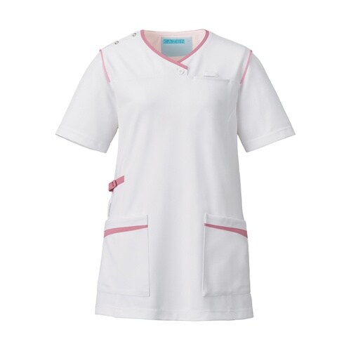 KAZEN レディススクラブ ホワイト×ピンク L 992−13 A04E-3995