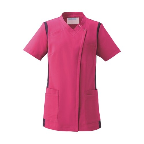 KAZEN レディススクラブ(前開き)ビビッドピンクネイビ 6L 972−47 6L A04E-4036
