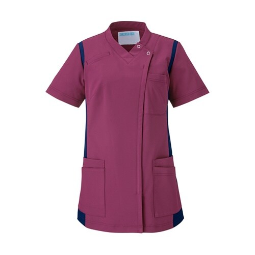 KAZEN レディススクラブ(前開き)ワイン×ネイビー 6L 972−45 A04E-4053