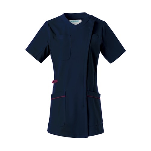 シンプルでスタンダードなレディススクラブ動体裁断やわらかく伸縮性のある素材右胸に、携帯・スマートフォン対応ポケット付。左胸の名札ループは、名札だけでなく、手元を照らすクリップライトの取り付け場所として |