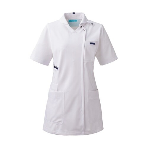 レディススクラブジャケット半袖 ホワイト×ネイビー L KZN710−18 L