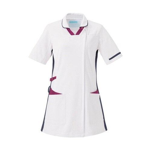 小ぶりの衿付きスクラブ後姿を美しく見せる脇配色で、視覚による着やせ効果あり袖のラインは部署別管理に活用できます