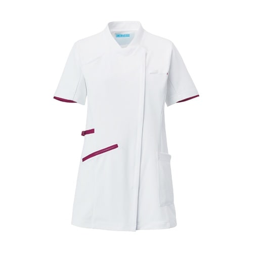KAZEN レディスチュニックジャケット半袖 ホワイト×プラム LL 985−15L A04E-4171