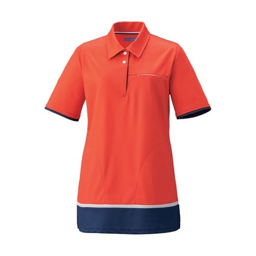 Aラインチュニック丈のレディスポロシャツ裾にかけて広がる形でシルエットを美しく見せてくれます。丈はチュニック丈で気になる腰まわりをカバー。下2つのボタンは人に当たらない比翼仕立て。割れにくいシリコンボ |