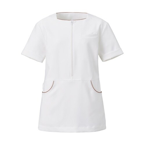 KAZEN レディスプルオーバー ホワイト×ベージュ LL KZN312−10L A04E-4264