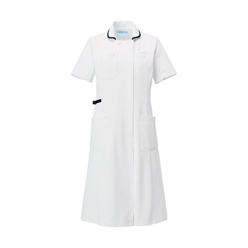KAZEN ワンピース半袖 ホワイト×ネイビー S 990−18 A04E-4311