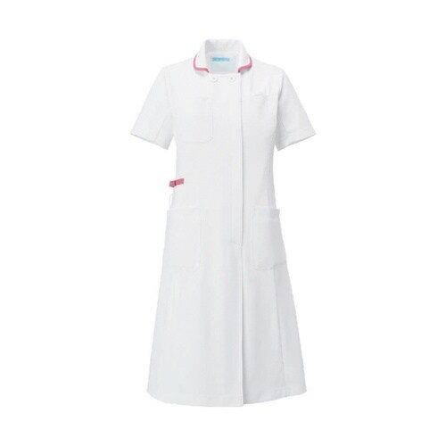 KAZEN ワンピース半袖 ホワイト×ピンク M 990−13 A04E-4316