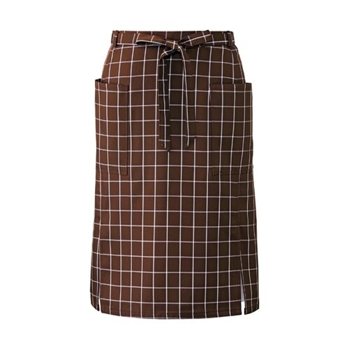 KAZEN 腰下エプロンミドル丈 ブラウンチェック フリー APK488−K33 A04E-4375
