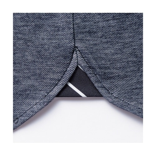 高級感のあるトラッド風ニットシャツ。肉厚で柔らかく肌触りのよい、杢調のニット素材です。裾のスリットには別布ストライプのアクセントを入れており、本体生地とのカラーコンビがおしゃれです。