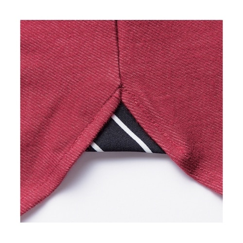 高級感のあるトラッド風ニットシャツ。肉厚で柔らかく肌触りのよい、杢調のニット素材です。裾のスリットには別布ストライプのアクセントを入れており、本体生地とのカラーコンビがおしゃれです。