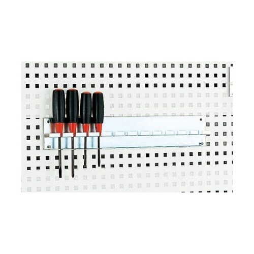 パンチングパネルに取り付けて、ドライバーなどのサイズバリエーションを整理・整頓しての保管・管理に適しています。パンチングパネル付の部品管理ラックやツールワゴンなどに取り付けるのが、有効です。パネルにフ |