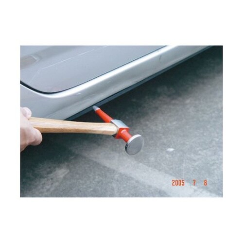 柄は軽くて丈夫で弾力性のあるヒッコリーを使用しています。頭部硬度はHRC40−50です。板金等。