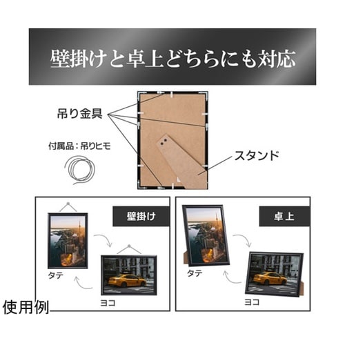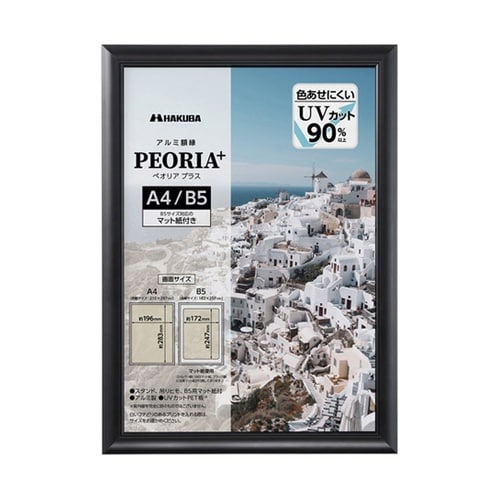UVカットPET板を使用したシンプルなデザインのA4サイズ用アルミ額縁。B5サイズも飾れるマット紙(中額)付き。 |