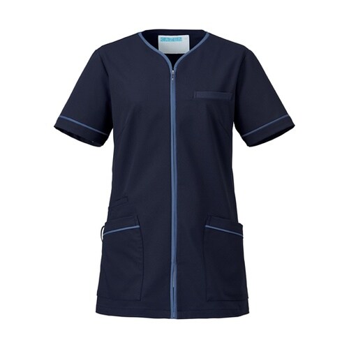 KAZEN レディスジャケット半袖 ネイビー×スモーキーブルー M 782−48 A04E-4891