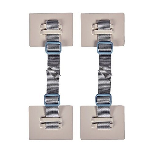 強力粘着パッド使用で壁に穴を空けずに設置できます。窓・障害物などさまざまなシチュエーションに対応可能です。家具・キャビネット等の転倒を防止する製品です。 |