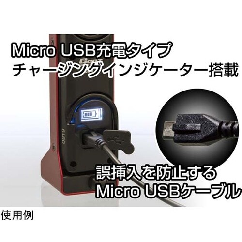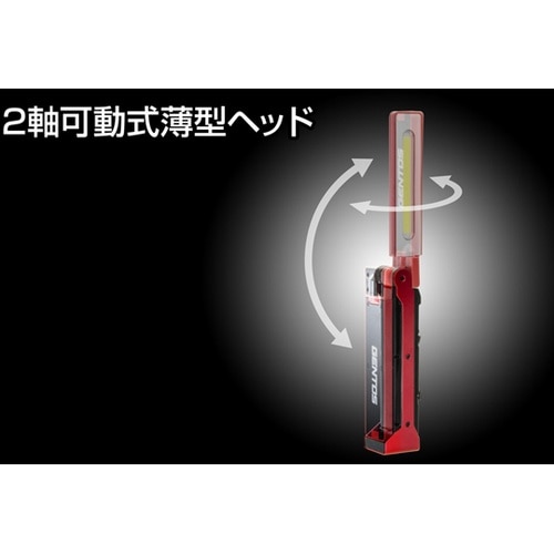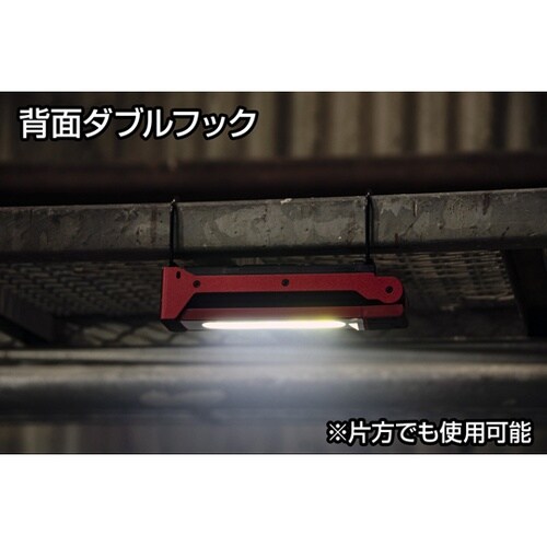 USB充電式COB LED:多数のLEDチップを密集して基板に直接実装した光源。多灯式に比べ多重影ができにくく、照射範囲も広い特長を持つ。底面マグネット180°可動薄型ヘッドで折り畳み可能。ダブル背面 |