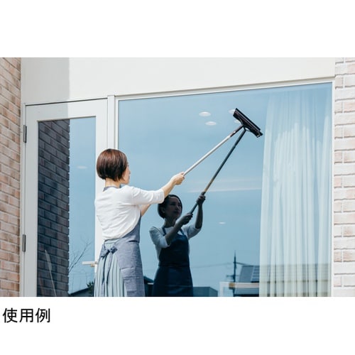 窓ガラスにこれ1本。スポンジ部分で水拭きしながら汚れを落とし、ゴム部分でしっかり水切り。高所も安全に作業できる伸縮タイプ。ヘッドと柄はワンタッチで簡単に取り外せます。 |