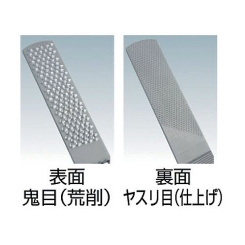 表面が鬼目(荒削り)、裏面がヤスリ目(仕上げ)になっており、ヤスリ本体に幅があるため、切削力を必要とする作業に最適です。石こうボード、スレート、レンガ、軽量コンクリート、木材、樹脂の加工用ヤスリ。 |
