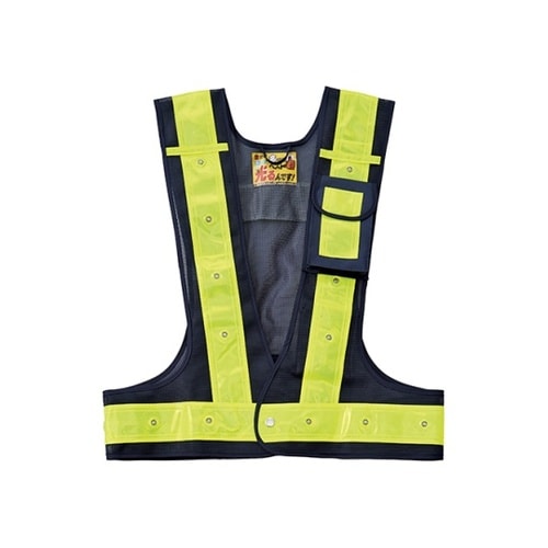 日本緑十字社 多機能LEDベスト(メッシュ部/紺 反射部/黄 LED発光色/赤) 238099 A04E-5130