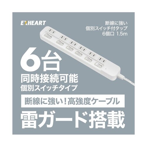 断線に強いスイッチタップ 6個口 1.5m ETA−KS615RD