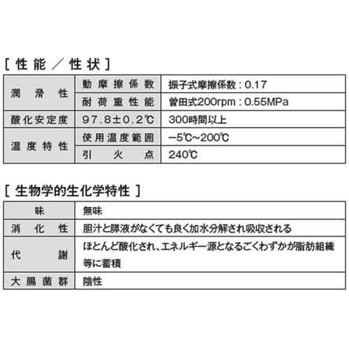 NSF−H1、3Hグレード食品機械用オイルスプレー。潤滑剤そのものが”食品”である上”衛生管理”された食用油ラインにて生産されています。安全性の指標として「急性毒性LD50=15g/kg」で実質上無毒 |