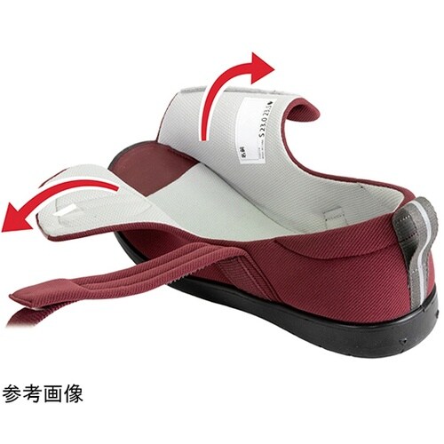 つま先上がりの靴底形状のため、小さな段差につまずきにくくなっています。かかとに入ったカップがしっかり支えるため、シューズの中で足が安定し、ぐらつきを軽減します。踏んでもつぶれにくいカップを使用していま |