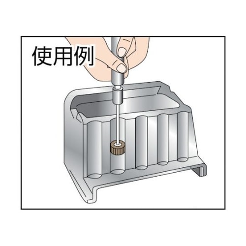 軸がねじ込みになり、着脱がワンタッチでできます。チャックに軸を取り付けたまま、取り替えることができます。別売のスピン軸を使うことで軸長が標準長さ(40mm)と深穴用(100mm)の軸を取り替えて作業が |