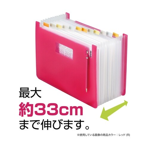 ポケットが伸び縮みするアコーディオン式の収納スタンド