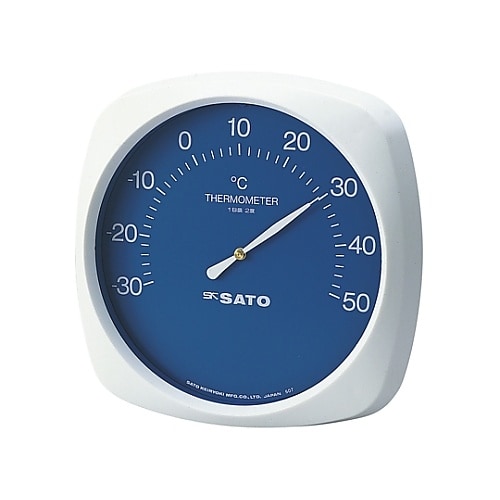 直径15cmの鮮やかなブルーの文字板に、白い目盛が良く映える温度計です電源不要でエコな製品です |