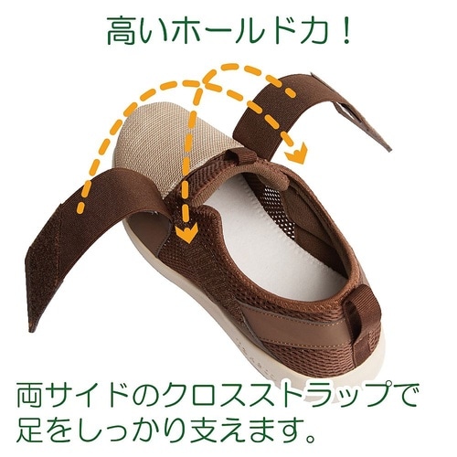 安定した歩行をサポートする室内外兼用シューズです。普段履きにも使えるツートーンカラーのおしゃれでカジュアルなデザインです。足幅4E、足囲3.5Eとゆったり設計で足のストレスを軽減し、中敷を取り外すと足 |