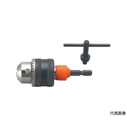 強靱六角シャンク採用によりチャック軸の折れが激減しました。チャックキー付です。チャックアダプター差込角は六角6.35mmです。 |