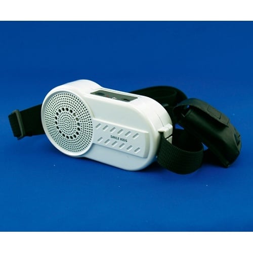 スピーカー部を腰に取り付け、マイクを付けて使用するため両手が自由に使えます。マイクは、頭に付けるヘッドホンタイプマイクと耳掛けタイプマイクの2種類です。最大出力7W。 |