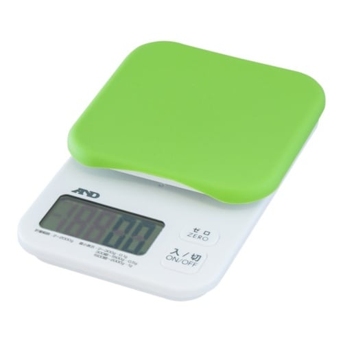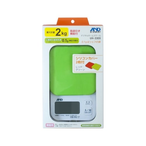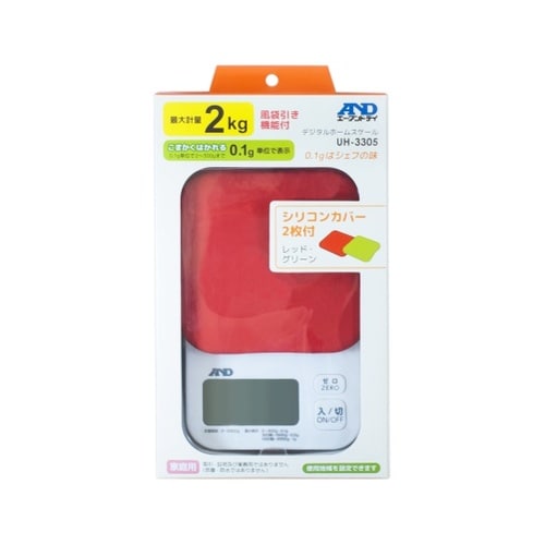 0.1gはシェフの味。こまかくはかれる0.1g単位のデジタルホームスケール。パン、菓子、ケーキ作り等さまざまな調理の計量に。シリコンカバー2枚付き(グリーン、レッド各1枚)。裏返して使うとパスタなどを |