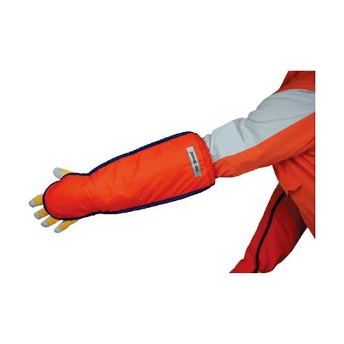チェンソー作業用防護衣の安全基準に準拠した高機能繊維を使用しております。チェンソー作業時の腕カバーとして。 |