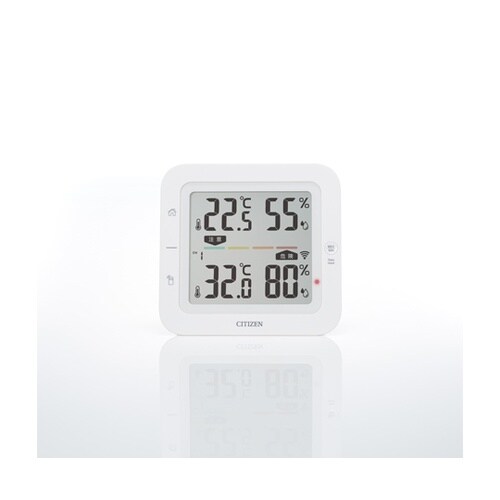 離れた2か所の温湿度をモニタリング本体と子機センサーは約50mまで受信可能です。別売の子機追加で最大3か所の温湿度測定が可能です。4段階の簡易熱中症指標とアラートランプ付きです。最高温度/最低温度のメ |