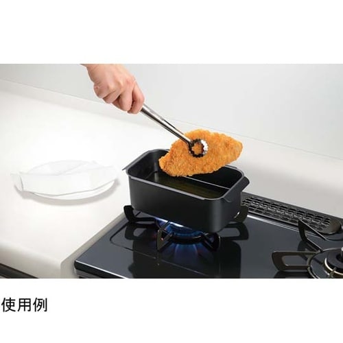 少ない油で揚げられるコンパクトな角型揚げ鍋長い食材もゆったりあげられる横長タイプ油の移し替えも角を使えばラクに注げます |
