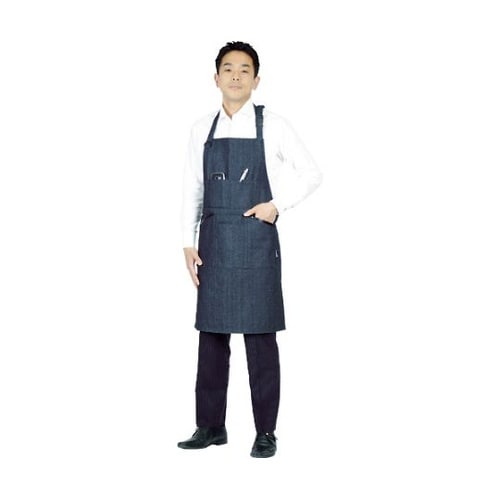 丈夫なデニム素材でできたエプロンです。ポケット5個付きで小物収納に便利です。首掛け紐は長さ調整可能です。工場や倉庫などの軽作業に。磨き作業、バリ取り作業に。 |