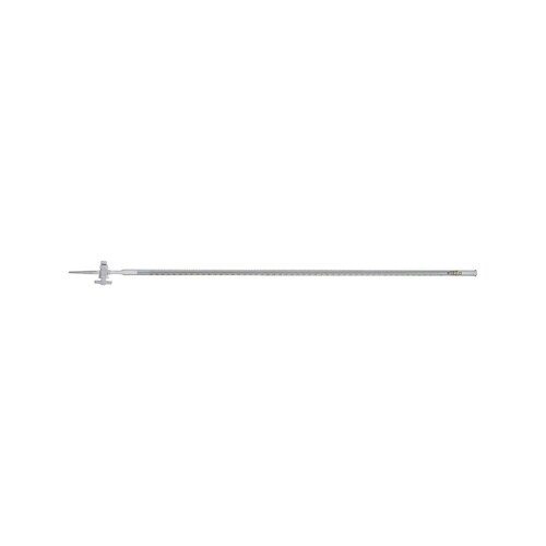 容量滴定に使用し、滴下した液の容量を秤量するためのガラス実験器具です。JISR3505クラスAの「体積の許容誤差」と同等、またはそれ以内で製作されています。目盛はシルバーステン目盛です。 |