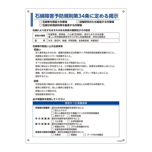 石綿障害予防規則標識 RAE−005 600×450×1mm ペットボトルリサイクルボード 412005