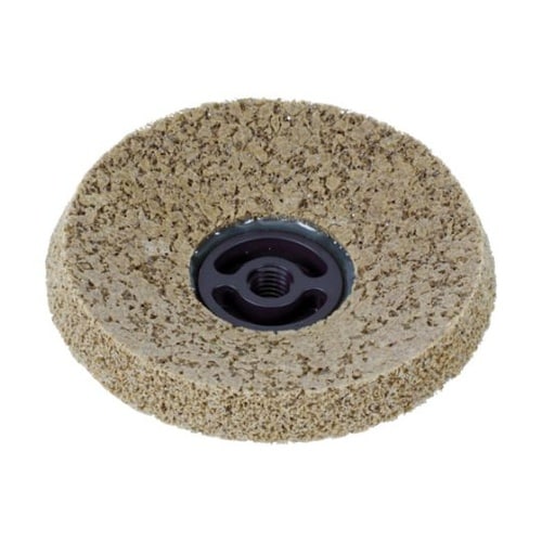 傘型の特殊形状に加工されているため、常にディスクの先端がワークにあたり、美しい仕上げができます。柔軟性が高く、凹凸面にもよく馴染み、ワークを削りすぎません。目づまりが少なく、ナイロンの溶着がありません |